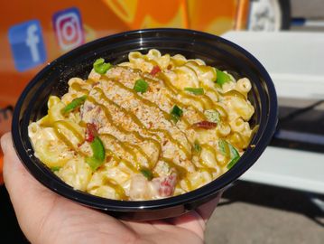 Scratch made Mac and Cheese with Funnel Cake Fries and drinks Gourmet Mac N Cheese Food Truck. Thats 4 TIMES as many as almost every other food trucks that have been operating for several years. Food truck catering for your next event.